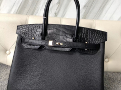Hermès(爱马仕)Touch 系列 Birkin 黑色拼雾面方块黑色鳄鱼 30cm 金扣 顶级手缝