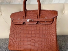 Hermès(爱马仕)Birkin 25cm Alligator matt 雾面鳄鱼 ck37 金棕色 马鞍皮色 银扣 白色线 顶级手缝 定制