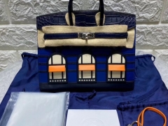 Hermès(爱马仕)Birkin 小房子 蓝色 超可爱 限量收藏级别 Epsom 拼 鳄鱼 外缝 20cm