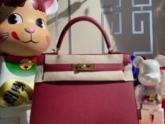 Hermès(爱马仕)Kelly 25cm Epsom 原厂掌纹皮 1Q奶昔粉拼1Z 小鸡黄 拉丝金扣 马蹄印 顶级手缝 现货