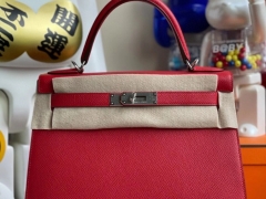 Hermès(爱马仕)Kelly 28cm Epsom 原厂掌纹皮 Q5 国旗红 银扣 顶级手缝