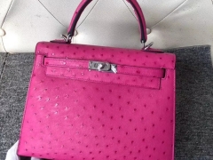 Hermès(爱马仕)kelly 25cm Ostrich kk 鸵鸟皮 E5 桃红 银扣 顶级手缝 定制