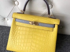 Hermès(爱马仕)kelly 25cm Alligator matt 雾面鳄鱼 M9 冰凝黄拼 4Z 海鸥灰 金扣 马蹄印
