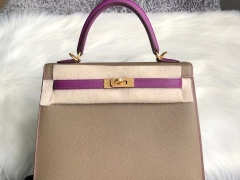 Hermès(爱马仕)Kelly 25cm Epsom 原厂掌纹皮 ck18 大象灰 拼 p9 海葵紫 拉丝金扣 马蹄印 现货
