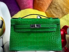 Hermès(爱马仕)Mini kelly pochette 22cm Alligator shiny 亮面鳄鱼 1L仙人掌绿 银扣 顶级手缝 晚宴包 现货