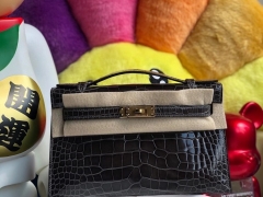 Hermès(爱马仕)Mini kelly pochette 22cm Alligator shiny 亮面鳄鱼 ck88 石墨灰 graphite 金扣 晚宴包 顶级手缝 现货