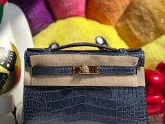 Hermès(爱马仕)Mini kelly pochette 22cm Alligator shiny 亮面鳄鱼 N7 风暴蓝 金扣 晚宴包 顶级手缝 现货