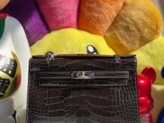 Hermès(爱马仕)Mini kelly pochette 22cm Alligator shiny 亮面鳄鱼 8F锡器灰 银扣 顶级手缝 晚宴包 现货
