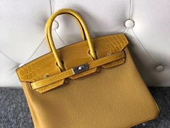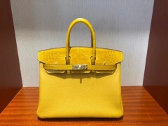 Hermès(爱马仕)Birkin 25cm Touch 9D琥珀黄 拼亮面鳄鱼琥珀黄 金扣 顶级 手缝 现货