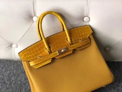 Hermès(爱马仕)Birkin 25cm touch 系列 9D 琥珀黄 Ambre 鳄鱼 银扣 现货