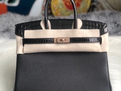 Hermès(爱马仕)Touch 系列 Birkin 25cm 黑色拼黑色亮面玫瑰金扣 rose gold 顶级手缝 现货