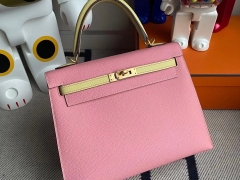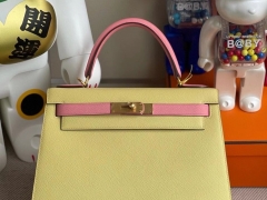 Hermès(爱马仕)Kelly 25cm Epsom 原厂掌纹皮 1Q奶昔粉拼1Z 小鸡黄 拉丝金扣 马蹄印 顶级手缝 现货