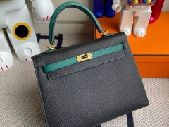 Hermès(爱马仕)kelly 25cm Epsom 原厂掌纹皮 ck89 黑色拼 z6 孔雀绿 拉丝金扣 马蹄印 现货