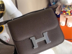 Hermès(爱马仕)Constance 18cm Epsom 原厂掌纹皮 巧克力色 银扣 顶级手缝现货