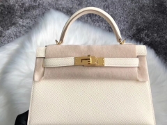Hermès(爱马仕)Mini Kellyll Epsom 原厂掌纹皮 I2 奶油白 金扣 顶级手缝 小可爱
