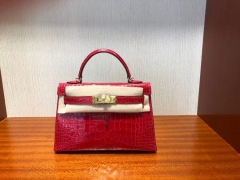 Hermès(爱马仕)Mini kelly ll Alligator shiny 亮面鳄鱼 ck95 法拉利红 Braise 金扣 现货