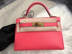 Hermès(爱马仕)Mini kelly ll 山羊皮 Chevre 8w 唇膏粉 rose azalee 金扣 顶级手缝