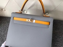 Hermès(爱马仕)Kelly 25cm Epsom 原厂掌纹皮 4Z 海鸥灰拼9v 太阳黄 金扣 马蹄印 顶级手缝 Hermès(爱马仕)kelly 28cm Epsom 原厂掌纹皮 1Z 小鸡黄拼1Q奶昔粉 拉丝金扣 马蹄印 顶级手缝