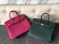 Hermès(爱马仕)Birkin 25cm Ostrich kk 鸵鸟 E5 桃红 vs Z6 孔雀绿