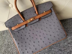 品牌:Hermès(爱马仕);类别:Birkin 铂金包;颜色:玛瑙灰;材质:鸵鸟皮;等级:顶级;附件:全套包装礼盒;尺寸:25cm;功能:手提单肩包