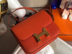 Hermès(爱马仕)Constance 18cm Epsom 原厂掌纹皮 火焰橙 金扣 顶级手缝 定制