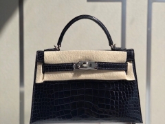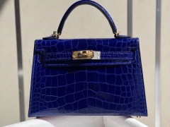 Hermès(爱马仕)Mini kelly ll alligator shiny 亮面鳄鱼 深海蓝 银扣 顶级手缝 小可爱 现货