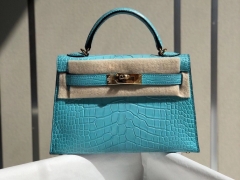 Hermès(爱马仕)Mini kelly ll alligator matt 雾面鳄鱼 3Z 圣西尔蓝 金扣 顶级手缝 小可爱 现货