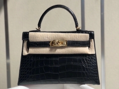 Hermès(爱马仕)Mini kelly ll alligator matt 雾面鳄鱼 ck89 黑色 Noir 金扣 顶级手缝 小可爱 现货