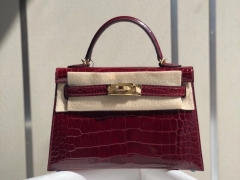 Hermès(爱马仕)Mini kelly ll alligator shiny 亮面鳄鱼 F5勃艮第酒红 金扣 顶级手缝 小可爱 现货