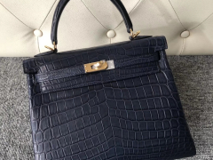 Hermès(爱马仕)Kelly 25cm Crocodile matt 雾面鳄鱼 深海蓝 Blue indgo 金扣 定制