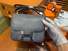 Hermès(爱马仕)Constance 空姐包 锡器灰 蜥蜴皮 银扣 18cm