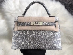 Hermès(爱马仕)Minikelly ll Lizard 进口亮面蜥蜴 01 原色 小喜马拉雅色 银扣 顶级手缝