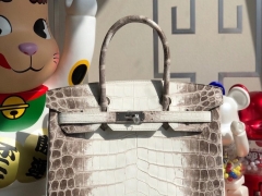 品牌:Hermès(爱马仕);类别: Birkin 铂金包;颜色:喜马拉雅;材质:鳄鱼皮;等级:顶级;附件:全套包装礼盒;尺寸:25cm;功能:手提单肩包