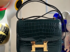 Hermès(爱马仕)Constance 18cm Alligator shiny 亮面鳄鱼 6O 帝王绿 金扣 顶级手缝 现货