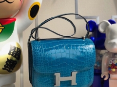 Hermès(爱马仕)Constance 18cm Alligator shiny 亮面鳄鱼 7w 伊兹密尔蓝 银扣 顶级手缝 现货