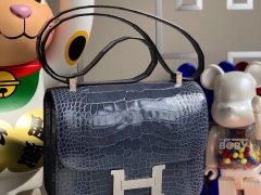 Hermès(爱马仕)Constance 24cm Alligator shiny 亮面鳄鱼 N7 风暴蓝 银扣 顶级手缝 现货