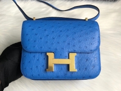 Hermès(爱马仕)Constance 18cm Ostrich kk鸵鸟 7Q希腊蓝 金扣 顶级手缝 现货