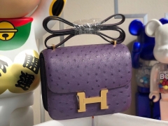 Hermès(爱马仕)Constance 18cm Ostrich kk 鸵鸟 葡萄紫 金扣 顶级手缝 现货