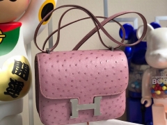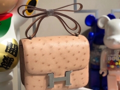 Hermès(爱马仕)Constance 18cm Ostrich kk 鸵鸟 皮粉 银扣 顶级手缝 现货