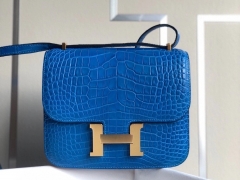 Hermès(爱马仕)Constance 18cm Alligtaor matt 雾面鳄鱼 7Q希腊蓝 金扣 顶级手缝