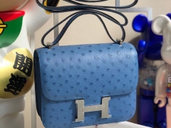 Hermès(爱马仕)Constance 18cm Ostrich kk 鸵鸟 玛瑙蓝 银扣 顶级手缝 现货