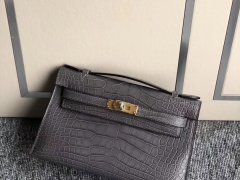 Hermès(爱马仕)Mini kelly pochette 22cm 雾面鳄鱼 巴黎灰 金扣 手拿包 晚宴包 现货