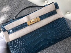Hermès(爱马仕)Mini kelly pochette 22cm 亮面鳄鱼 w0 博斯普鲁斯绿 金扣 手拿包 晚宴包