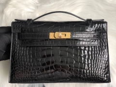 Hermès(爱马仕)Mini kelly pochette 22cm Alligator shiny 亮面鳄鱼 ck89 黑色 银扣 手拿包 晚宴包