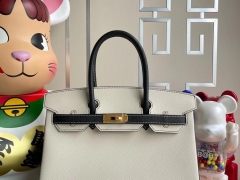 Hermès(爱马仕)Birkin 30cm Epsom 原厂掌纹皮 ck10奶昔白Craie拼 ck89 黑色 Noir 拉丝金扣 马蹄印