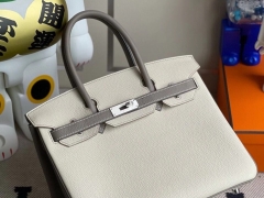 Hermès(爱马仕)Birkin 30cm 原厂小牛皮 ck10 奶昔白拼大象灰 拉丝银扣 马蹄印 顶级手缝