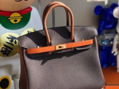 Hermès(爱马仕)Birkin 25cm togo 原厂小牛皮 巧克力色拼橙色拼金棕 金扣 马蹄印 顶级手缝