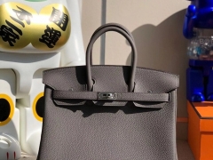 Hermès(爱马仕)Birkin 25cm 原厂小牛皮 togo 8F 锡器灰 Etain银扣 顶级手缝