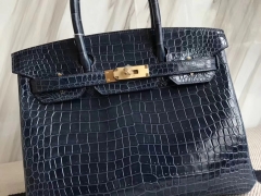 Hermès(爱马仕)Birkin30cm Porosus shiny 亮面澳洲湾鳄 N7 风暴蓝 金扣 现货