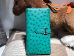 Hermès(爱马仕)bearn两折钱夹鸵鸟皮 U4 Vertigo 丝绒绿 银扣